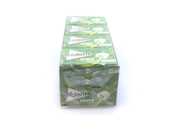 Trident Splash Spearmint. Τσίκλα χωρίς ζάχαρη και ζουμερή γέμιση με γεύση δυόσμο.